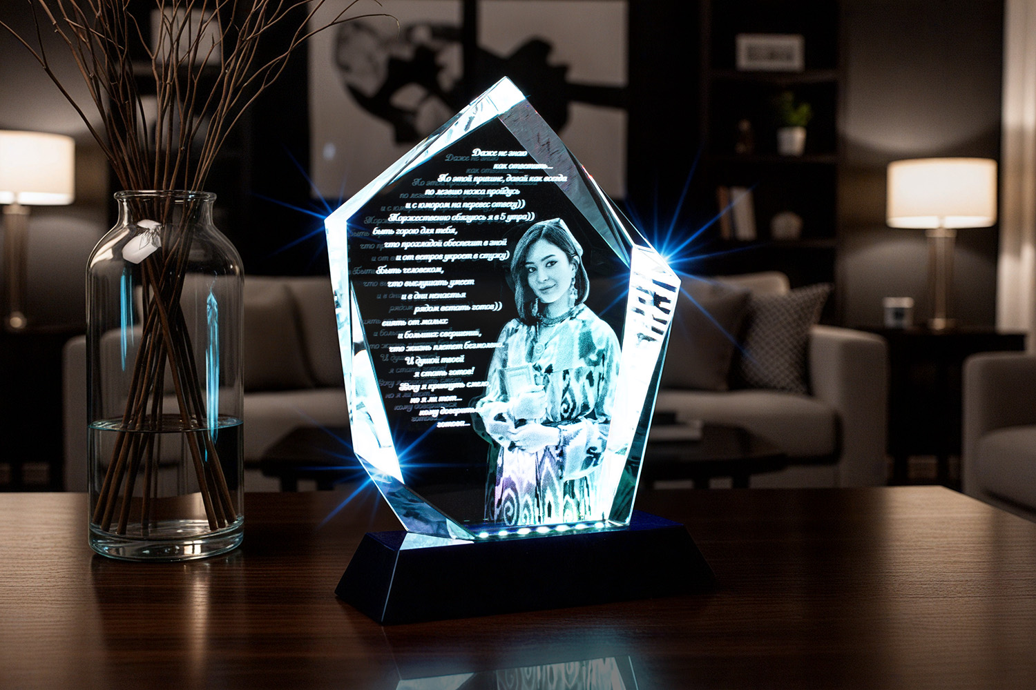 Изумительная награда изготовлена из абсолютно прозрачного оптического стекла, воплощая элегантность и современный стиль. Ее форма, напоминающая айсберг, притягивает взгляды и впечатляет своей уникальностью. Кристалл предлагает широкие возможности для гравировки логотипов, объемных изображений и текста, позволяя персонализировать награду.